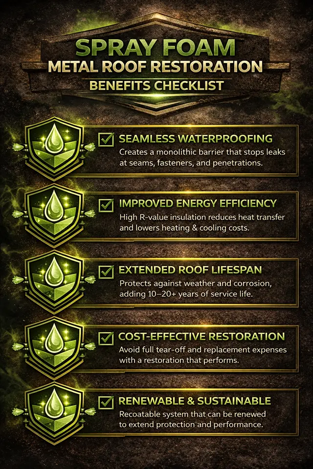 By combining seamless waterproofing, energy savings, and renewable maintenance, spray foam restoration transforms aging commercial roofs into efficient, durable systems built for the future.